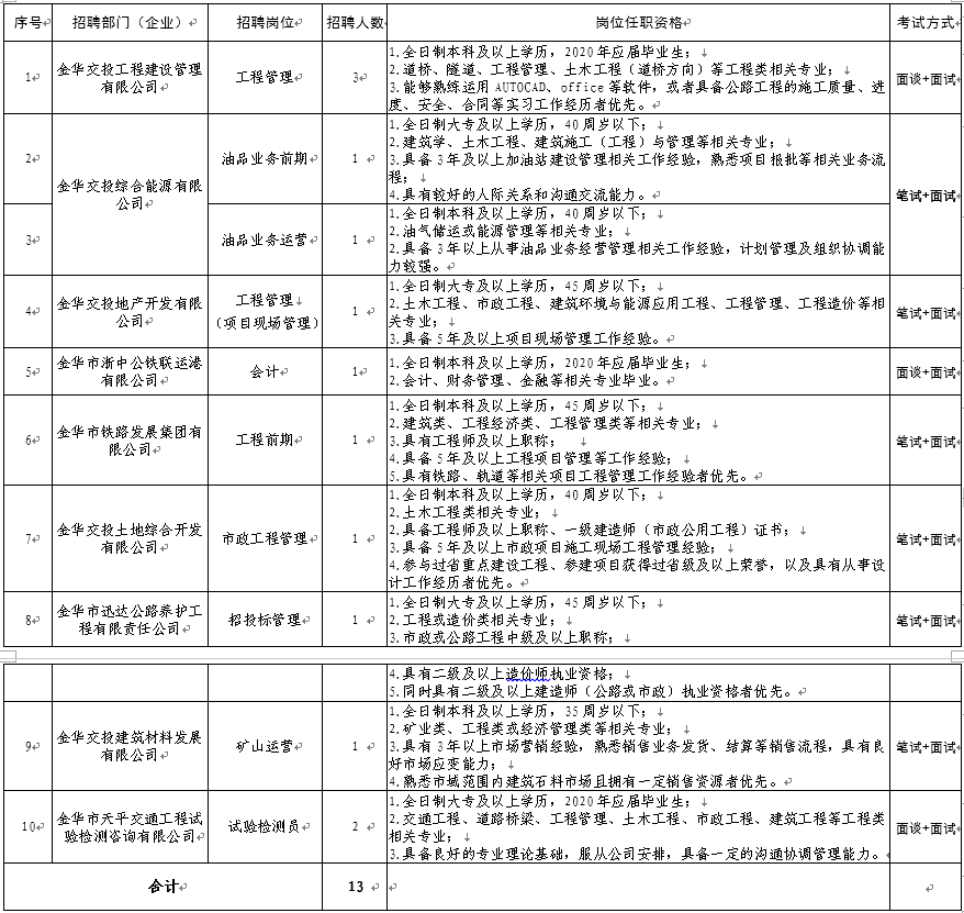 1.應(yīng)聘者應(yīng)于2020年7月3日—7月14日上午8:30~12:00、下午14:30~18:00攜帶《金華市交通投資集團(tuán)有限公司應(yīng)聘報名表》紙質(zhì)版(雙面打印,本人簽字)、所有證明材料原件復(fù)印件一份和證明材料原件到金華市交通投資集團(tuán)有限公司辦公室進(jìn)行材料復(fù)核。